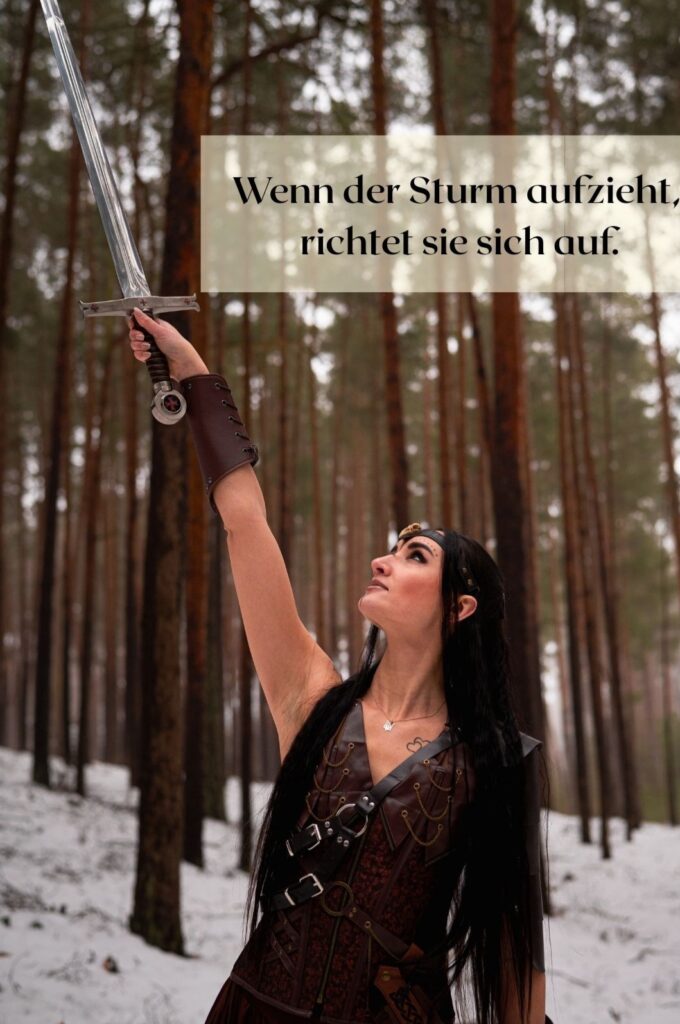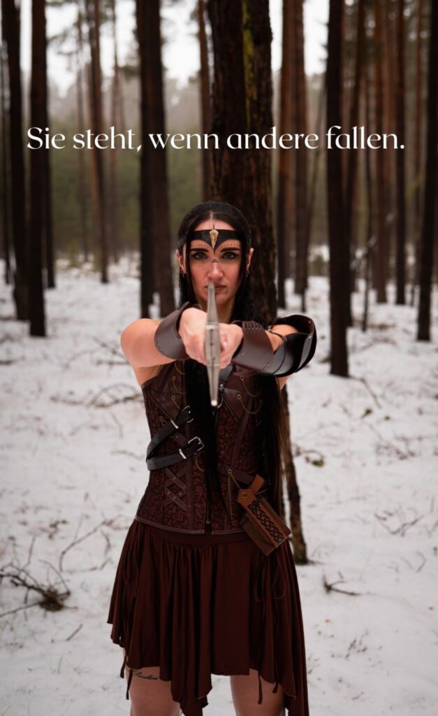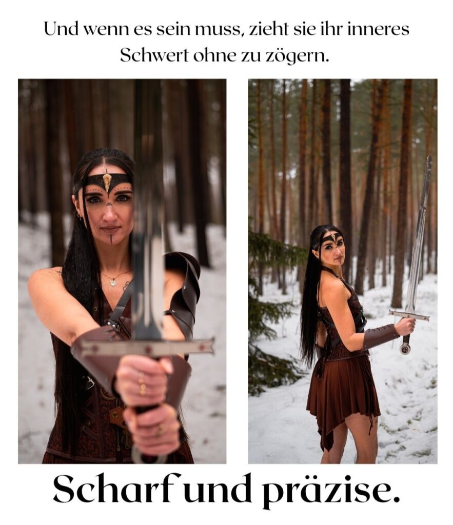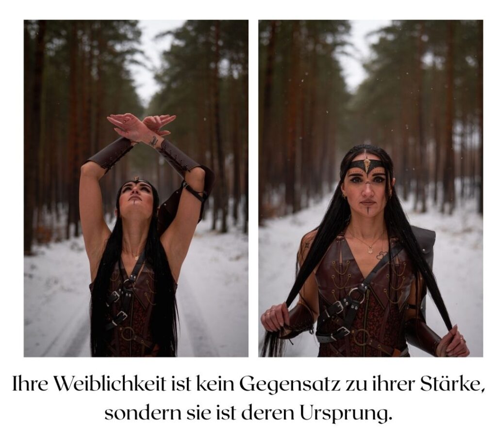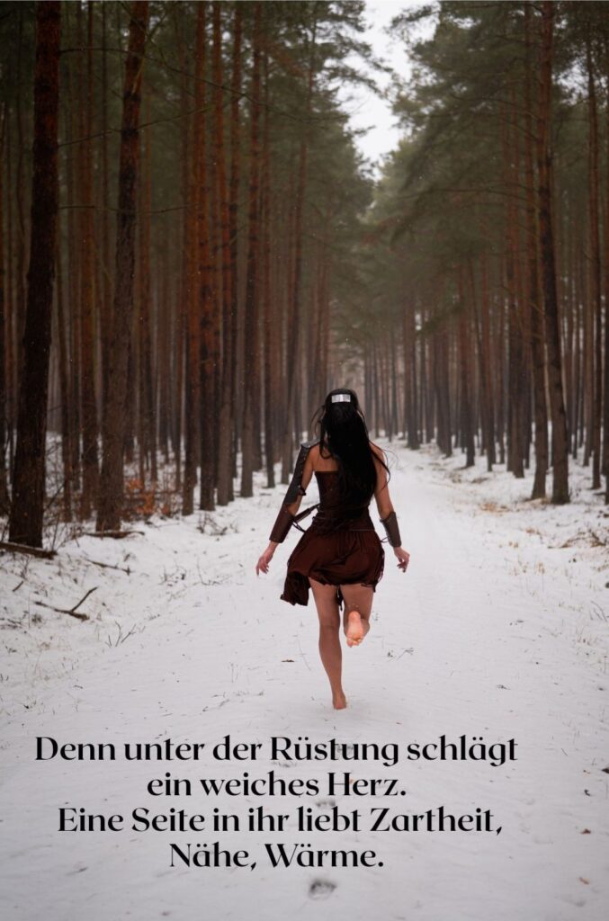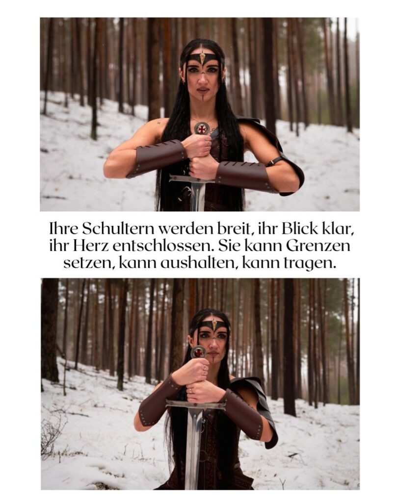 Nicht laut. Nicht kämpfend gegen die Welt. Sondern eine, die steht. Für sich & ihre Wahrheit. Für ihren Weg. Sie trägt keine Rüstung aus Stahl, sondern aus Erfahrung. Sie zeigt Stärke, die nicht schreit, sondern wirkt.